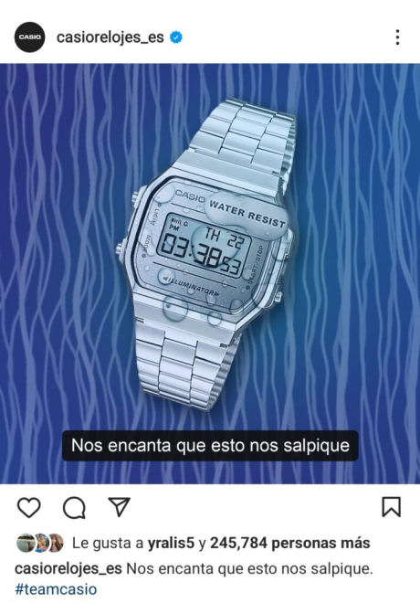 La cuenta de Instagram de Relojes Casio también reaccionó al lanzamiento del nuevo éxito de la artista colombiana, con la frase “Nos encanta que esto nos salpique”.